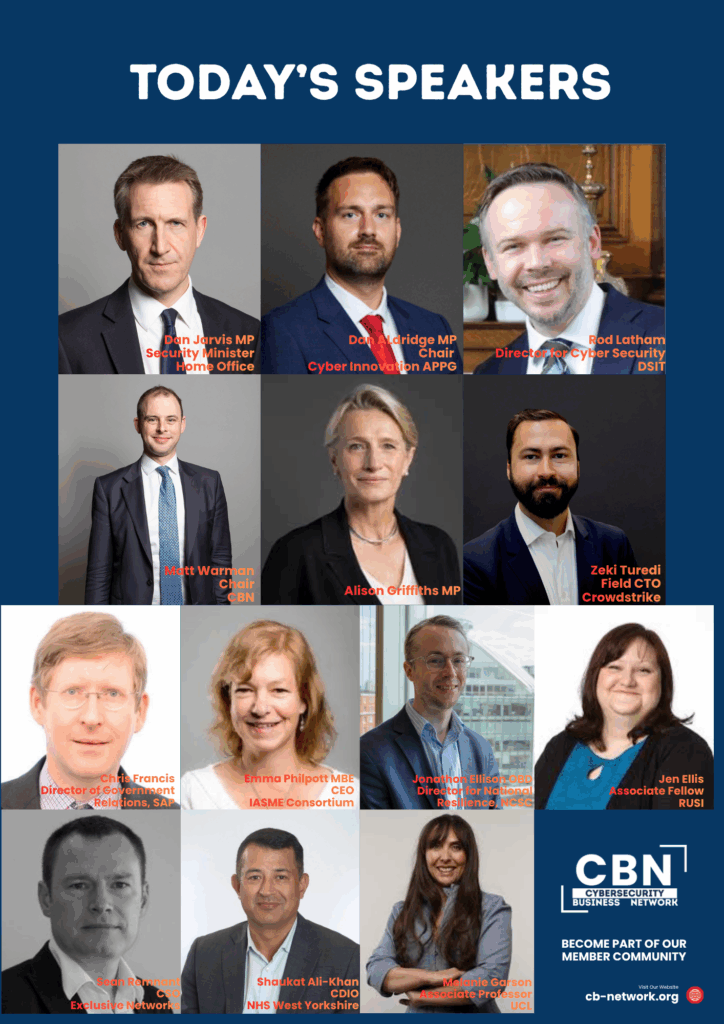 The conference hosted byMatt Warman, Chair of CBN and former UK Minister for Digital and Broadband brought together over 150 leaders from government, industry, and academia and some insightful panel discussions. The speakers include Security Minister, Home Office & Cabinet Office, Dan Jarvis MP, Jonathon Ellison OBE, Director of National Resilience for the National Cyber Security Centre (NCSC); Shona Lester, Head of the Cyber Security and Resilience Bill Team at DSIT; Daniel Aldridge MP, Chair of the APPG for Cyber Innovation; Alison Griffiths MP, Chris Francis, Director Government Relations at SAP, Zeki Turedi, Field CTO, Europe at Crowdstrike amongst others.
